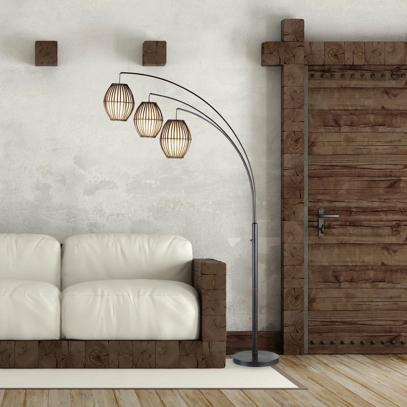Bend, shift and nudge the antique bronze arms of the Maui Arc Floor Lamp to give your home the perfect illumination. A slim profile allows this fixture to fit into compact spaces, while its 3 brown bamboo stick shades lined with fabric-like white rice paper offer you an abundance of lighting. With a dynamic approach to design, the Maui seeks to revamp and develop traditional decor conventions to push the boundaries of a modern look.