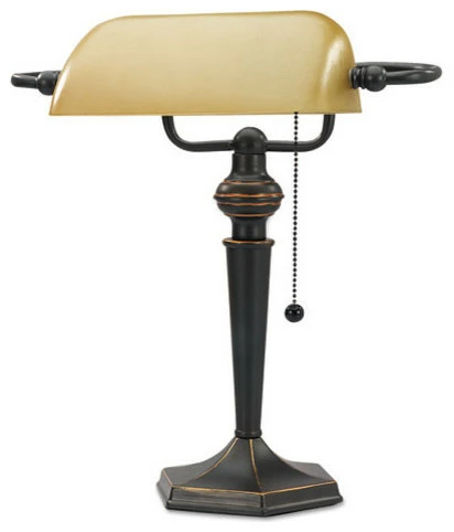 Classic design adds sophistication and elegance to any office, study, or home den. Refined glass shade rotates to pilot light direction. Classic pull chain for easy on/off power. 13W CFL bulb is included.