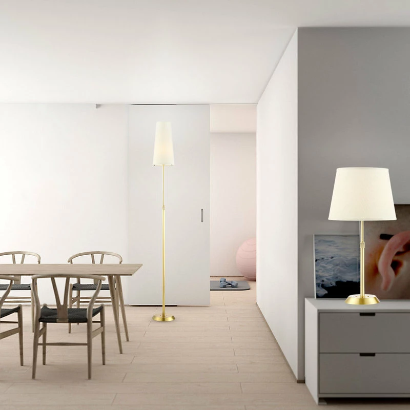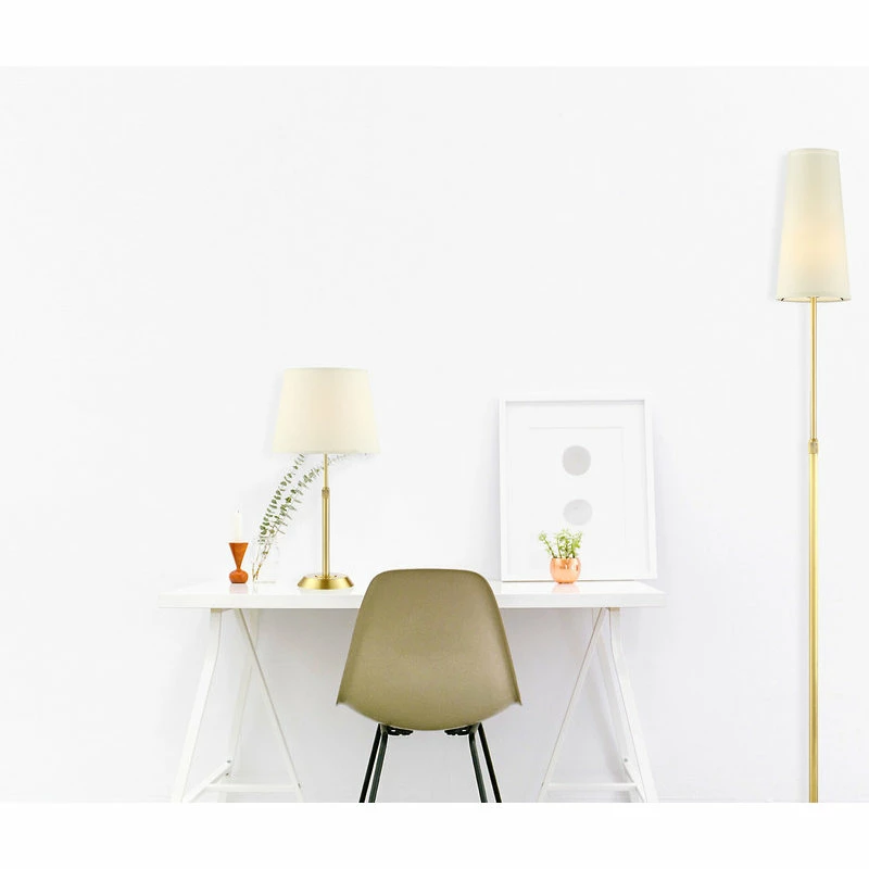 The Attendorn Floor Lamp combines function and beauty. This adjustable height Lamp features a sleek shade which completes its aesthetic styling. Satin Nickel, Satin Brass and Bronze Finishes. Arnsberg offers meticulous German engineering to beautify your home. Plug in. Requires 1 E26 (60W) Bulb, not included. Comes with a narrow shade, additional wider shade available for purchase.