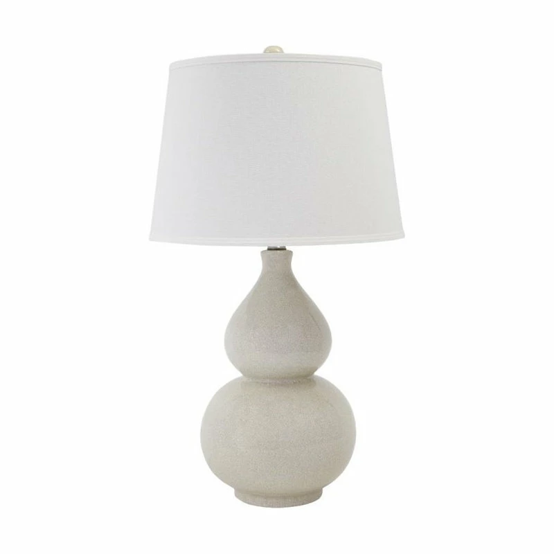 Turn onto a relaxed sense of elegance. Double gourd shaped base of this table lamp is simply gorgeous. Crackle glaze adds a rich layer of interest to the ceramic surface.