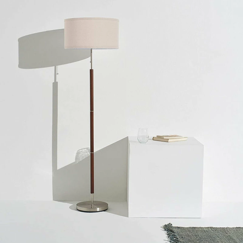 SIMPLE YET ELEGANT FLOOR LAMP MATCHES MIDCENTURY AND OTHER STYLES: Carter adds a touch of elegance to your living room, bedroom or office with its neutral linen drum lamp shade that complements its walnut wood finish stem with brass accents. The weighted base ensures it’s safe even in a kids room or with pets.