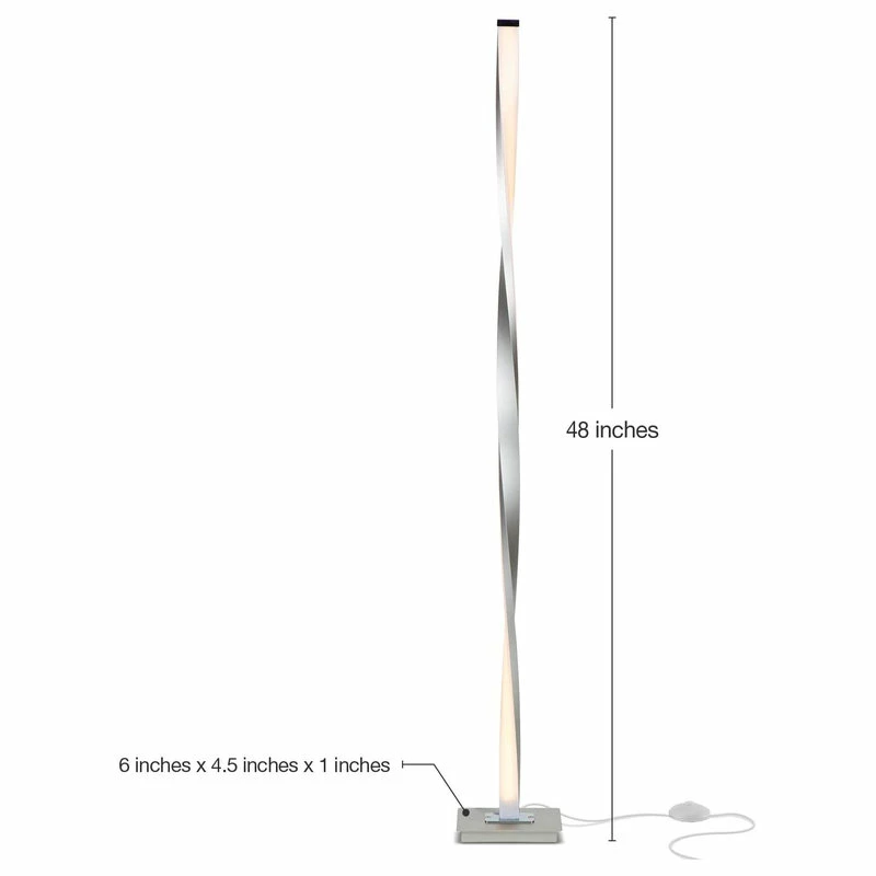 MODERN, SHADE-FREE POLE LAMP FOR LIVING ROOMS EARNS COMPLIMENTS: The unique, elegant style of this modern floor lamp impresses guests and starts conversations. The gently twisting fixture stands up about 48″ tall.
