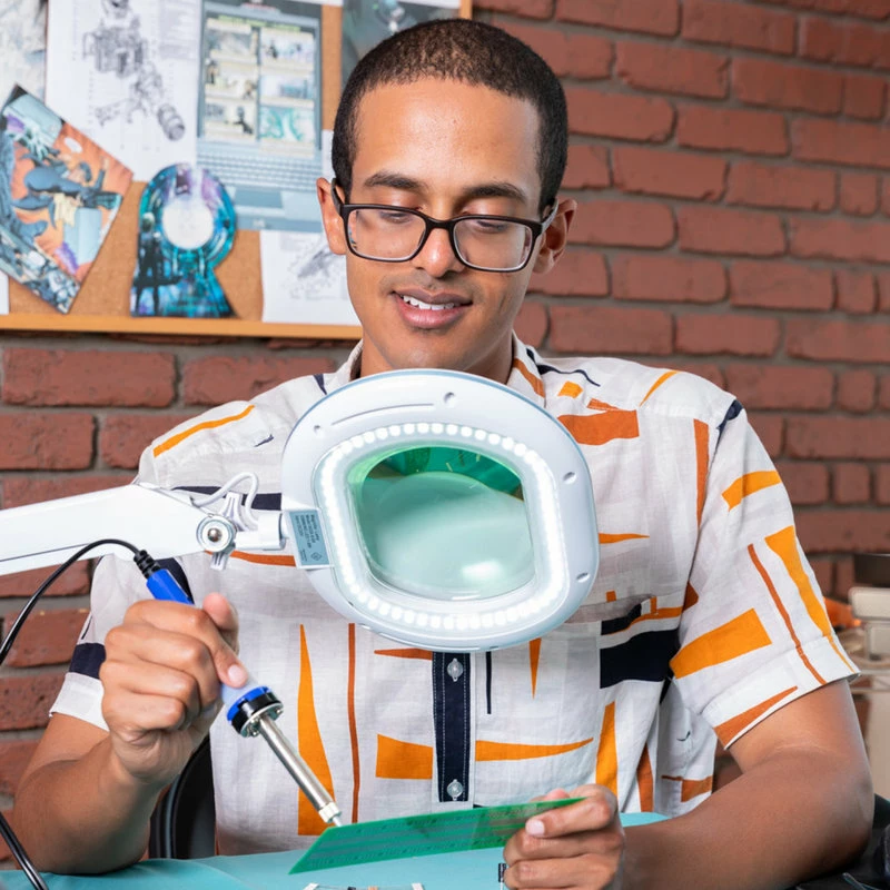HANDS-FREE COMFORT – COMMERCIAL GRADE ADJUSTABLE ARMS HOLD LENS IN PLACE: Standing about 5 feet fully extended, the LightView’s industrial-strength arms hold the lens in place without sagging. Point the lens and light where you need, then use both hands to sew, knit, do medical or dental work, apply lash extensions and other esthetician tasks, etc.