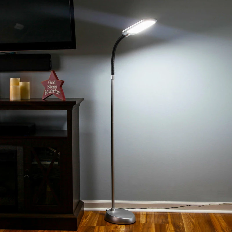NATURAL DAYLIGHT LED FLOOR LAMP: It produces 6,000K natural daylight spectrum white light with an output of 2,000 lumens, This lamp includes a 12 Watt power-saving LED light with a 20-year life – you will never have to replace a bulb. LEDs produce no heat, so they outlast short-lived, energy wasting halogen, CFL, or incandescent lighting Save money and energy while enjoying long lasting bright light.