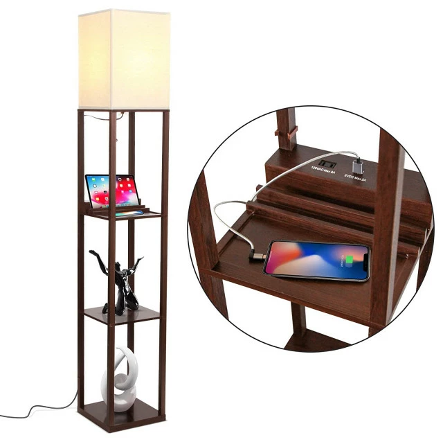 This tall freestanding lamp lends a soft ambient glow to contemporary spaces while providing a 3 tiered display shelving for added convenience. Style and function combine to brighten up your room and provide a storage or display area for vases, books, Blu-Rays, or other items. Utilize the convenience of this floor lamp in your bedroom, living room, guest room, foyer, or office. The opportunities are endless with this versatile lamp and shelf combination.