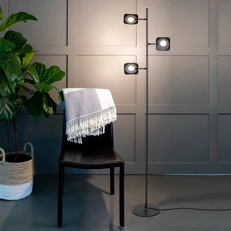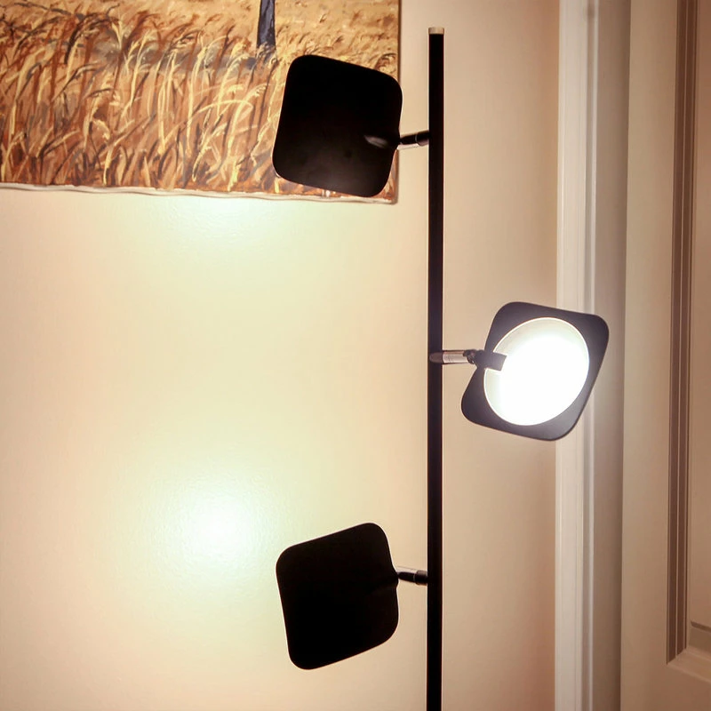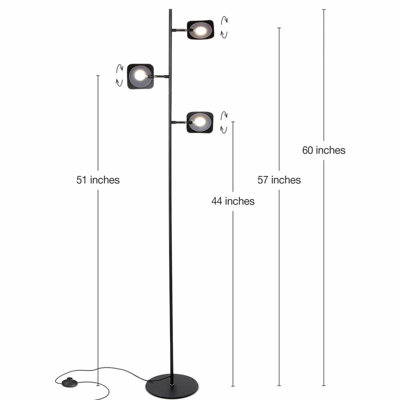 This Lamp has 3 omnidirectional LED light fixtures that can pivot or rotate 360ยฐ to shine the light to all corners of your living room, bedroom, or office. Each light fixture has a light diffuser that keeps the light soft and easy on the eyes. Adjust between the three brightness levels using the dimming foot switch, so that you can set the perfect lighting for your mood or tasks.