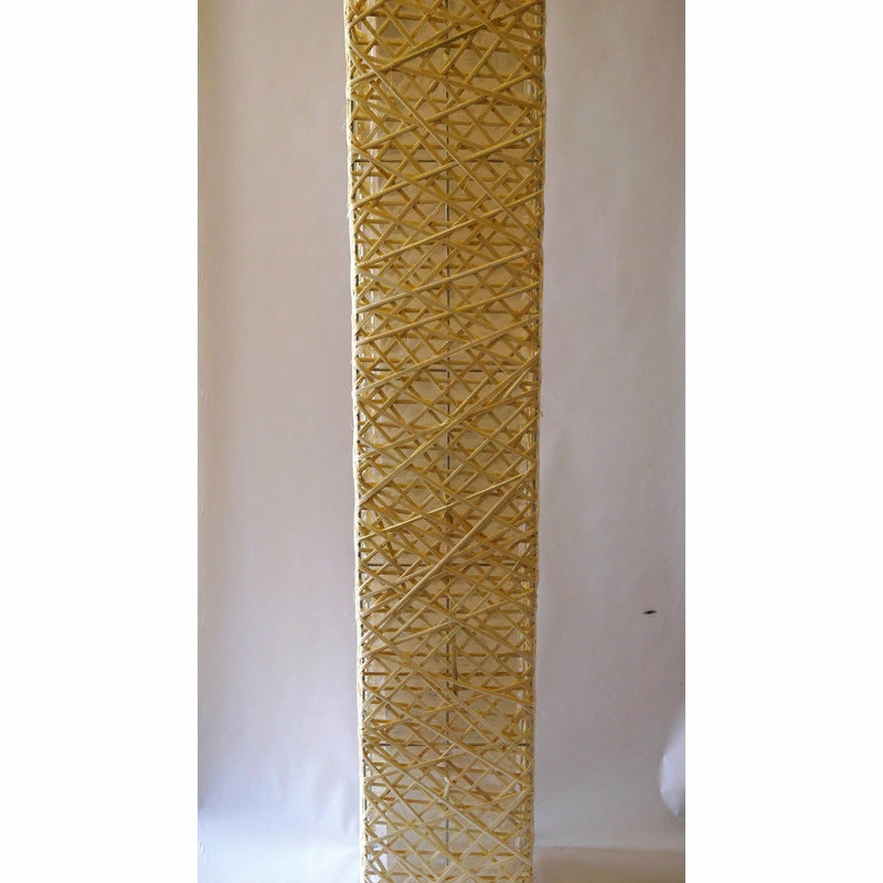 Unique design handmade bamboo woven floor lam., Nature beige bamboo was woven together to form a rectangle column shape, bamboo weave for decoration, metal frame for support.