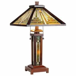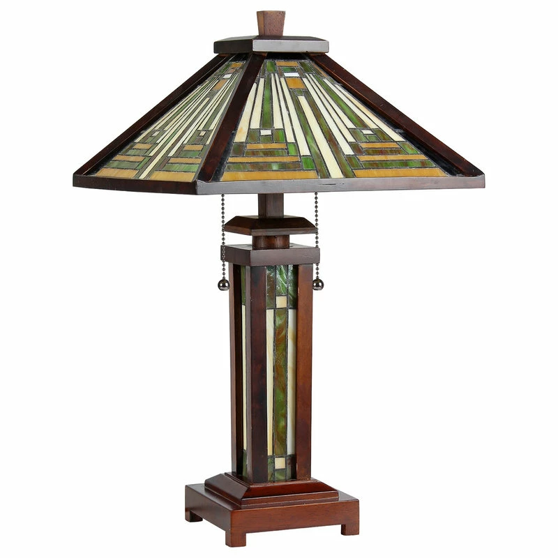 The Innes Table Lamp is an example of expert, handmade craftsmanship. It is made of rubberwood and real stained glass, making it an eye-catching feature in a bedroom or living room. Designs by CHLOE Lighting, Inc. are inspired by 17th-century craftsmanship and styles.