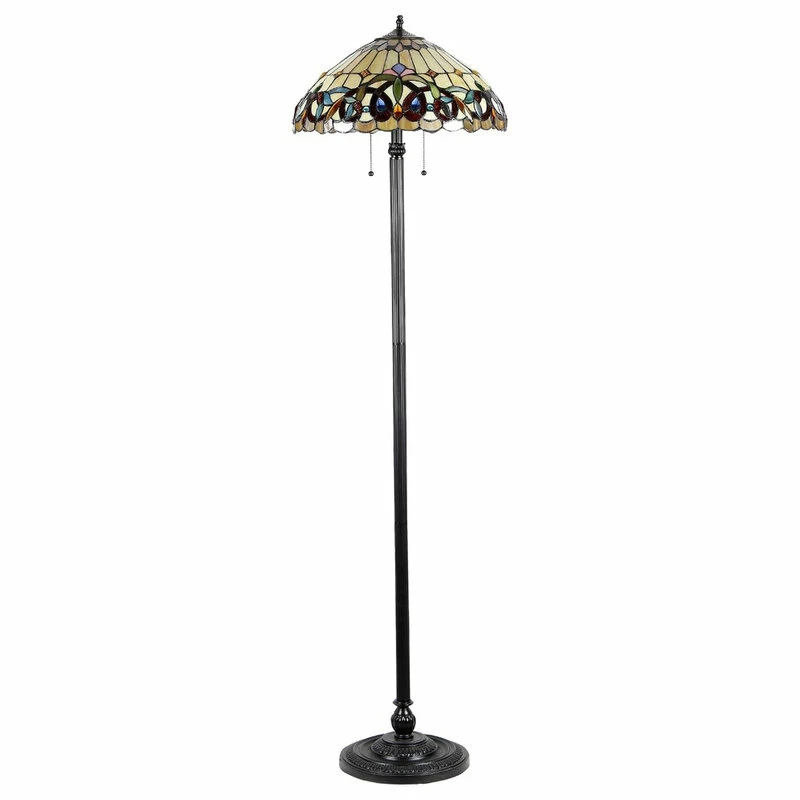 SERENITY, Tiffany-style Victorian floor lamp is handcrafted with pure stained glass. Each glass piece individually positioned to create the perfect look and crystal gems to highlight the perfection. Exquisite touches create warmth and serenity. Expertly crafted with top quality materials.