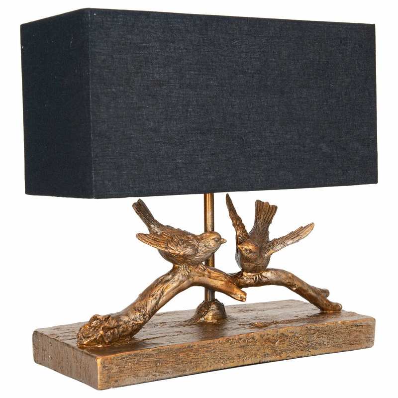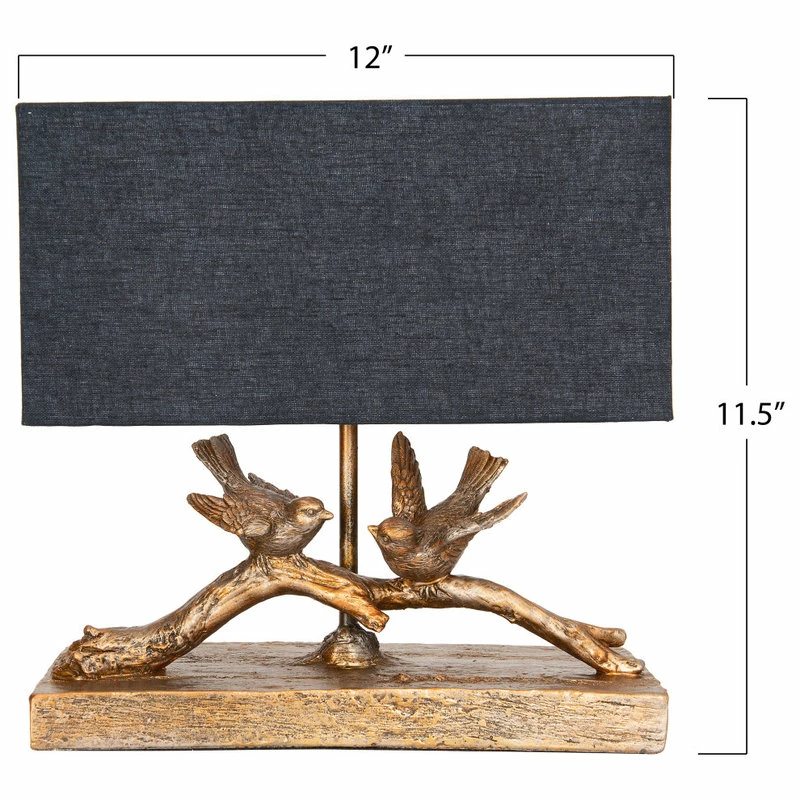 Make a glowing vignette and bring garden-inspired style to your home with this 12-inch table lamp. Crafted from resin, the base features a tree branch design with two birds perched atop of it. Intricate carvings bring a lifelike quality to the piece, while the gold finish brings contrast to the rectangular linen shade. Place this luminary atop your foyer-s console table, and then pair it with a blooming floral vase and shimmering mirror to create an inviting display. Use it to illuminate a cozy reading nook by placing it on top of a side table next to an arm chair. Or, use it to round out a woodland-themed atmosphere in the guest bedroom.