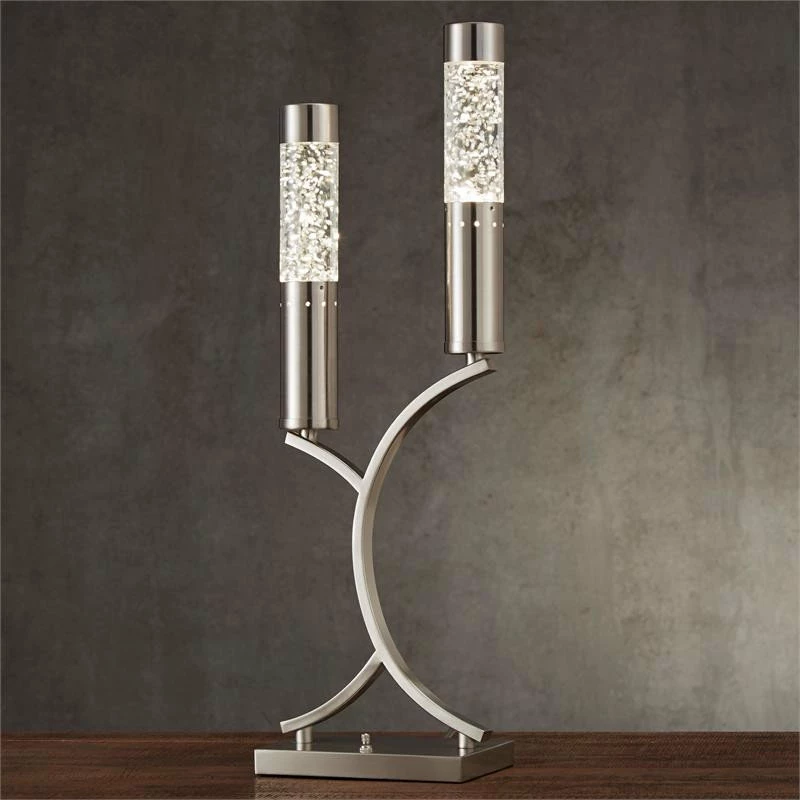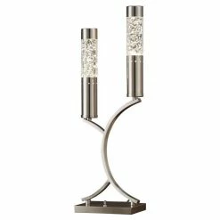 This accent lighting can change the ambiance of any room. Its ultra modern design showcases sparkling decorative mood light, with tiny rippling water-droplets to simulate the soothing dancing water motion. Elegantly crafted stand features high quality metal and glass that comes in satin nickel finish. Great addition piece on your night stand, end table, or sofa table to create the mood in any room.