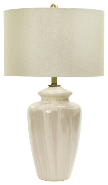 Fangio Lighting’s #MR8276E 28″ Ceramic Table Lamp is sure to become an instant favorite. Don’t sacrifice fun for function! This light is created with attention to detail, adding a touch of whimsy to any room with it’s simple, classic vase form and brush stroke design. The clean Rustic Eggshell Crackle finish is accented brilliantly by a White Linen Drum designer shade. The chic Antique Brass finial and an easy to use 3-Way switch complete the charming impression. The light takes one 100W bulb (not included). Whether you are looking to illuminate existing decor or need a little help to boost your decorating creativity, this lamp will fit the bill! Item created to compliment multiple decor genres ranging from classic/traditional sophistication to the charm of Transitional styles. Show off your fabulous tastes while showcasing your American pride! This lamp is MADE IN THE USA and is UL approved. Bring this lamp home! You’ll be happy you did!