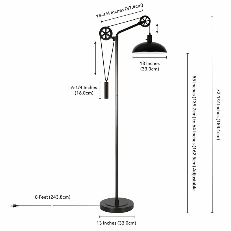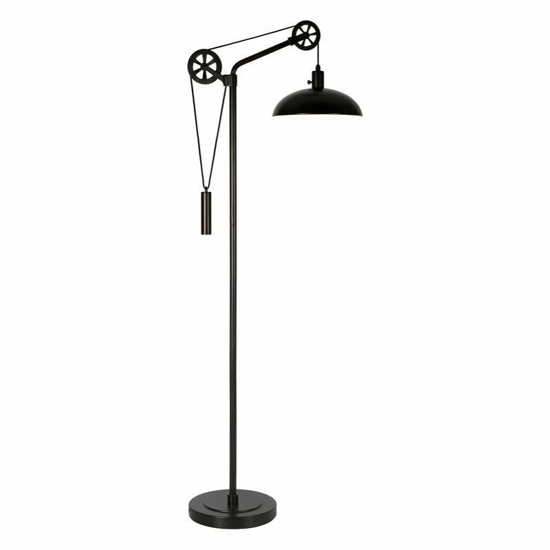 This unique and eye-catching industrial floor lamp is made to be the center of attention in your living room, bedroom, dining, or even office. It’s a conversational modern twist on a traditional and classic design. Hand crafted from metal in a deep contemporary blackened bronze, brass,finish and featuring a functional adjustable pulley system.
