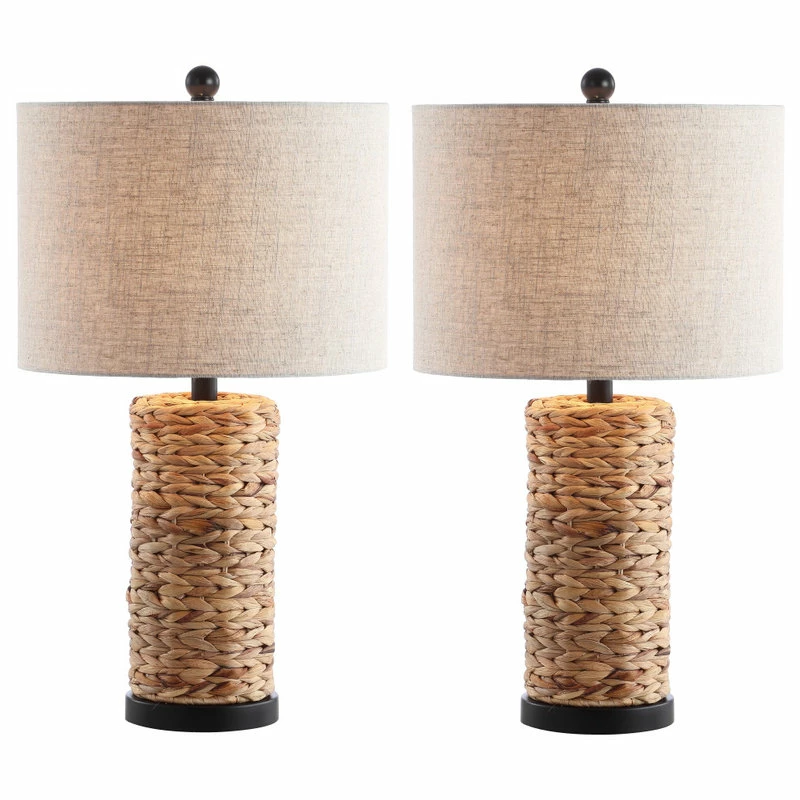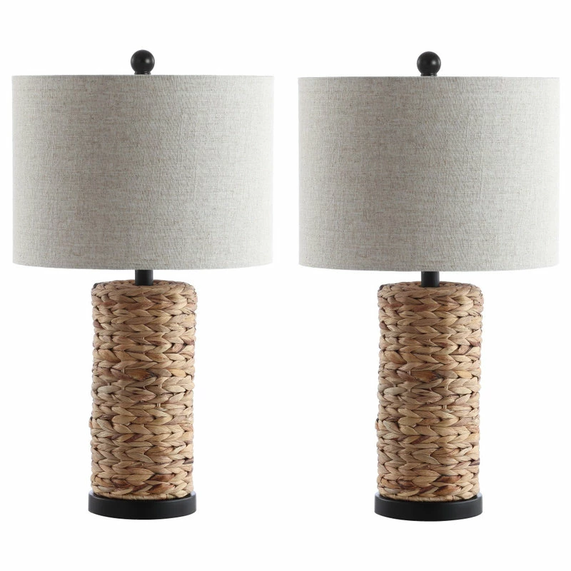 Prized for its beautiful warm tones of beige and hand-braided by skilled artisans, the cylinder bases of this pair of table lamps are completely wrapped in dried sea grass. Often used in baskets, sea grass makes a casual statement while adding texture to your surfaces. Finished in a matching finial and natural linen gray shade, it’s an instant coastal classic.
