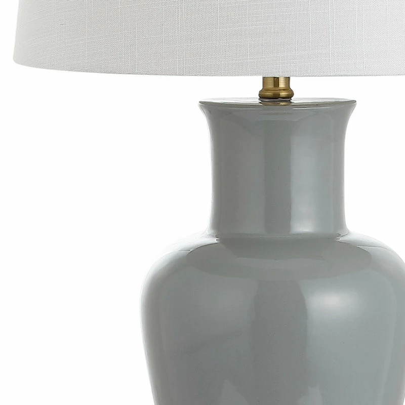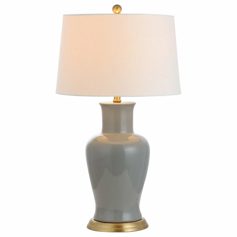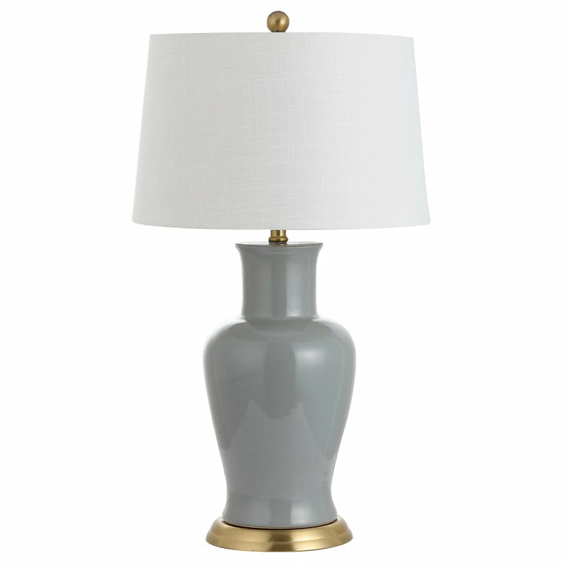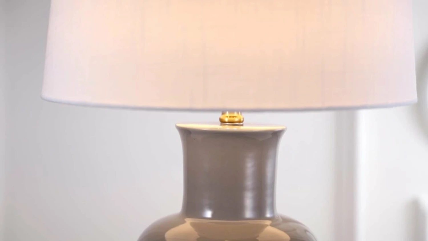 Designed from finial to plus with every element considered for timeless appeal, this lamp’s tasteful urn-inspired profile offers a statuesque ambiance. Ceramic with a gray glazed finish complements a base made from brushed brass and matching accents. A cotton linen shade with a slightly tapered silhouette offers a soft finish.