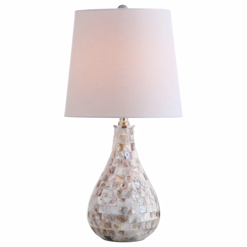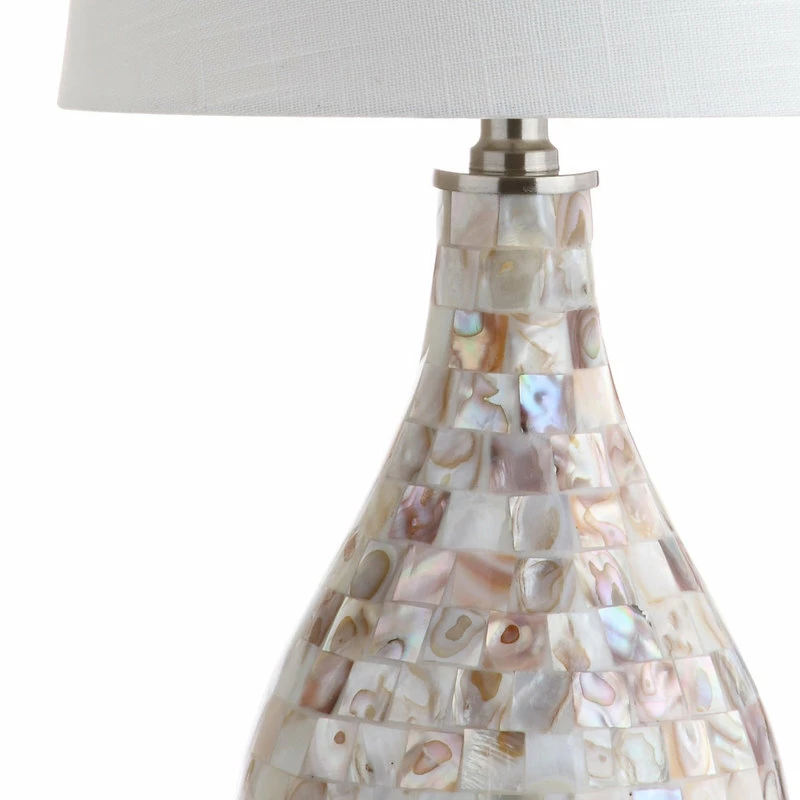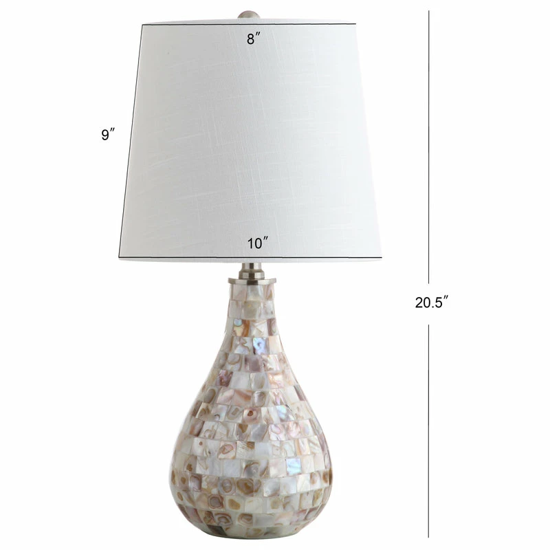The refined teardrop shape of this seashell-embellished table lamp creates a modern take on this coastal classic. With a mosaic made from the pearlescent interiors of collected seashells, the mother-of-pearl type finish on this gorgeous base simultaneously emotes seaside glamour and luxe living. If your room needs a touch of refinement and the warm glow of a perfectly scaled 20.5″ table lamp then you cannot go wrong with this beautiful piece.