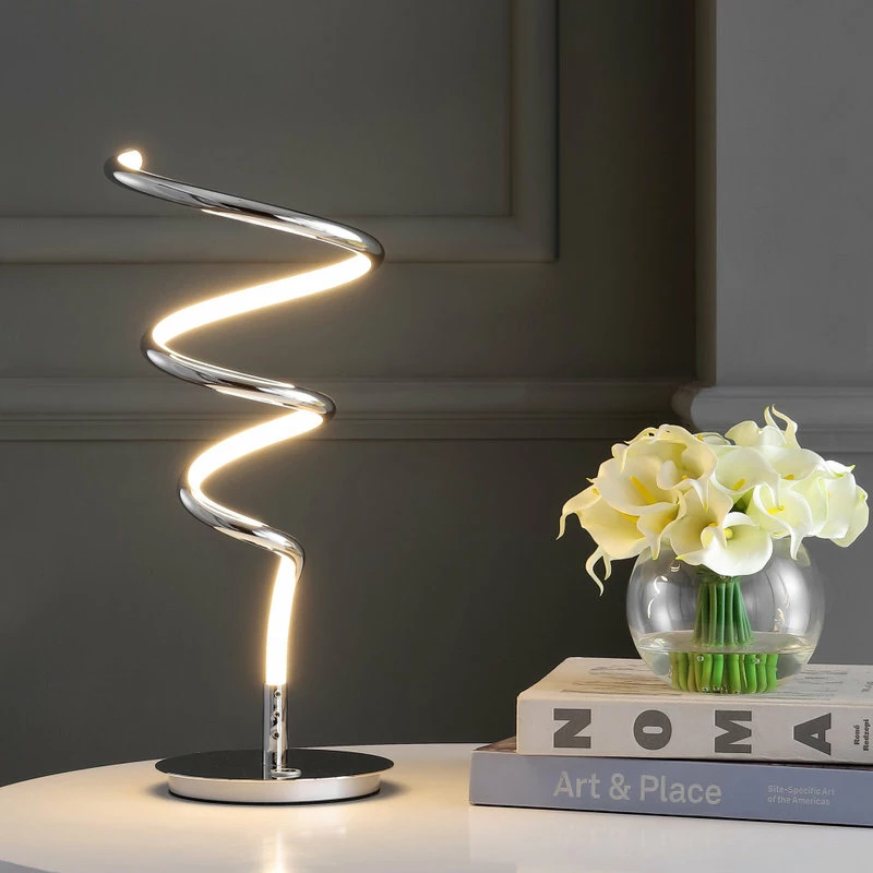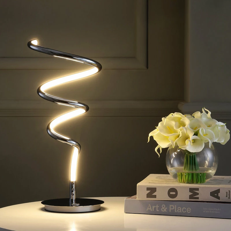 Our scribble-inspired, modern table lamp features energy-saving, integrated LEDs that last 15 years or more. This slim, 19.5″ tall lamp provides bright, clear light; you set the mood with 3-way touch controls. Contemporary style for a living room, dining room, entry, or office.