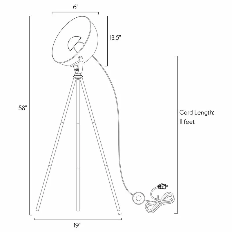 DIMENSIONS: Floor Lamp: 58″ (H) x 19″ (W) x 19″ (L), Shade: 13.5″ (D) x 6″ (H), Cord Length: 11 feet. Dimmer, wall switch, timer and smart plug compatible