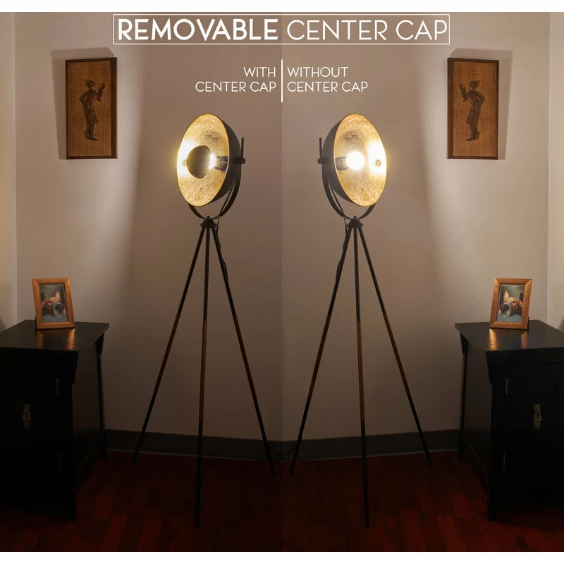 The Sulis black tripod lamp is a gorgeous lighting option that will add to your modern home designs. The floor lamp features 3 wobble-free sturdy metal legs, stitched leather accents, and a unique satellite dome shade. The black accent cap beautifully directs light back into the crackled gold inner shade, giving the lamp plenty of character, making it a standout amongst the competition. Not just a looker, the Sulis is also smartly designed with a convenient on/off foot switch. This floor lamp is the ideal and stylish choice for urban lofts and studio living. Bring it home with you today!