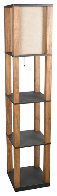 The stately Natural Wooden Shelf Floor Lamp uses natural woods and a beige shade to create a warm, inviting space to highlight some of your favorite curios. Handcrafted with premium materials, the three slate shelves elegantly contrast with the natural tones of the wood and the light can be turned on or off with the handsome pull chain. With its durable construction and warm, natural colors, this floor lamp from Emerald Home would give any corner a cozy, comfortable feel.