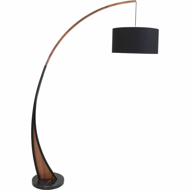 With a unique design all of its own, the LumiSource Noah Floor Lamp is the perfect piece to set off any living area. Ultra sleek, the arched wood and metal neck is complimented by a stylish black linen shade and sturdy base, providing a retro vibe with modern appeal.FeaturesOne (1) 60W Bulb, Bulb Not Included; Indoor Use Only, Ul Listed, Cul Listed, Assembly RequiredMid-Century Modern styling Arched, walnut wood frame Marble base Fabric drum-shaped shade Requires (1) 60W bulbRome of Use Great for use in living room, den, dining room, office, or bedroomCollection NoahColor Walnut, BlackMaterial Wood, Marble, FabricProduct Dimension 59.5 L x 18 W x 77 H Base TypeDiameter 13.75 Bulb Height 56″ Socket Type E26Made in China