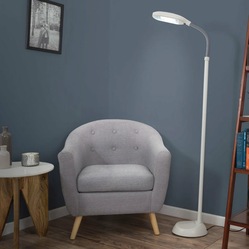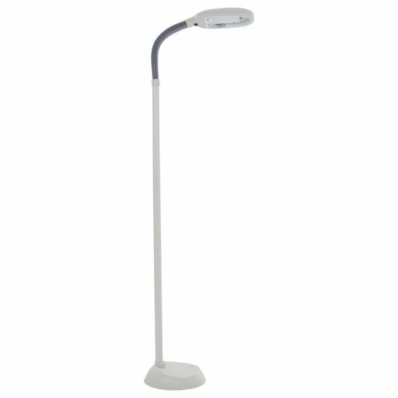 Lavish Home brings you form and function with the Natural Full Spectrum Sunlight Reading Floor Lamp that produces pure bright white illumination making colors appear more vibrant while reducing eye strain and fatigue. The supplied 27-Watt CFL Bulb gives as much light as an ordinary 150-Watt bulb, but uses far less energy. This bulb can last up to 5,000 hours, 5x longer than other bulbs. The flexible gooseneck design lets you adjust the lamp to any angle to direct light where you need it. Perfect for reading, working, or doing intricate craftwork. A must-have addition to your home or office, this lamp provides natural full spectrum daylight hues, brightening even rooms that have minimal sun exposure.