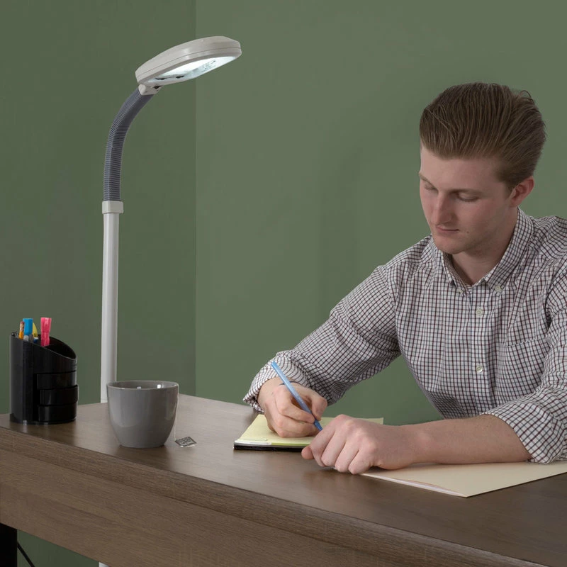 APPROXIMATES NATURAL LIGHT ��� Sun lamp provides pure bright, natural light, making it easier to see while eliminating eye stress and fatigue. The energy-saving replaceable CFL-27W bulb included is 1300 Lumens, which is a light appearance of 6500K, equivalent to daylight and the natural sun. Perfect for working, reading, or intricate craftwork.