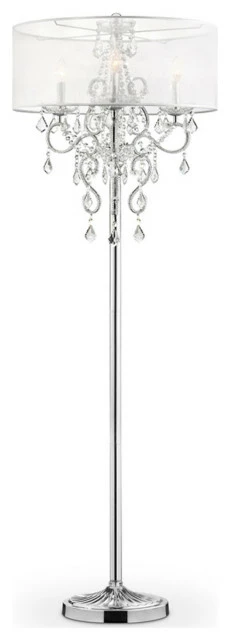 This Evangelia Crystal Floor Lamp is an enchanting piece that is absolutely breath taking, an ideal addition to any room whether modern, contemporary, vintage, or rustic. Attention grabbing, place this floor lamp in any room to complete the room decor. Beautifully decorated, a chic and elegant lamp that is a stylish all around; a lamp that will surely be the center piece that lights up the room. This Evangelia Crystal Floor Lamp is chic and elegant, decorated with beautiful 100% imported crystals. This Floor lamp is an enchanting piece that will compliment any room decor. This 63″ Floor Lamp comes with Solid Crystal Embroidered the whole Candelabra Metal Frame and silver chrome steel base floor lamp has a drum see-through acrylic shade that will modernized the lamp or used without a shade that will traditionalized the lamp and is beautifully constructed with a touch of cleanliness adorn with dropped 100% imported crystals that hangs all over the lamp, a definite ideal piece that is breath-taking. Features