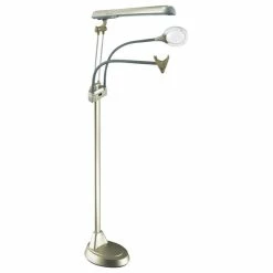 The OttLite 24w Ultimate 3-in-1 Craft Lamp is designed for ultimate functionality with an adjustable magnifier and pattern clip. Three lamps in one, it comes with a kit letting you easily convert from a floor lamp to a sturdy clamp-on configuration or table-top lamp to meet the needs of your workspace. A flexible neck attachment with sturdy clip securely holds pictures, patterns, charts, instructions and more โ itโs like having an extra hand. It’s also a magnifying lamp with an LED lighted 2x optical grade magnifier. With OttLite Natural Daylight Illumination, you can see details clearly and reduce glare and eyestrain so you can do what you love, longer.
