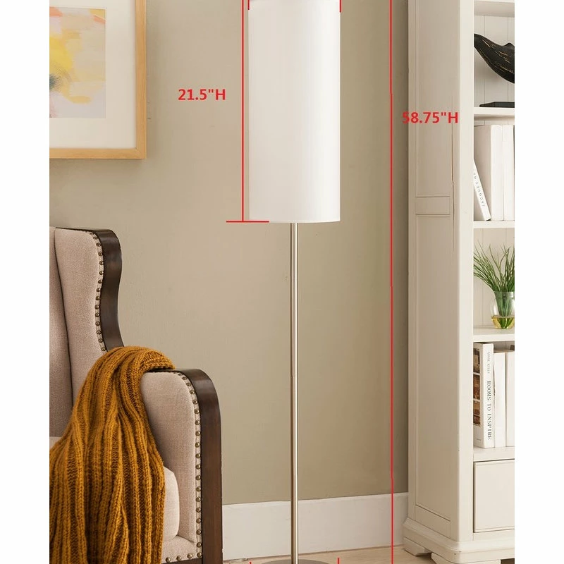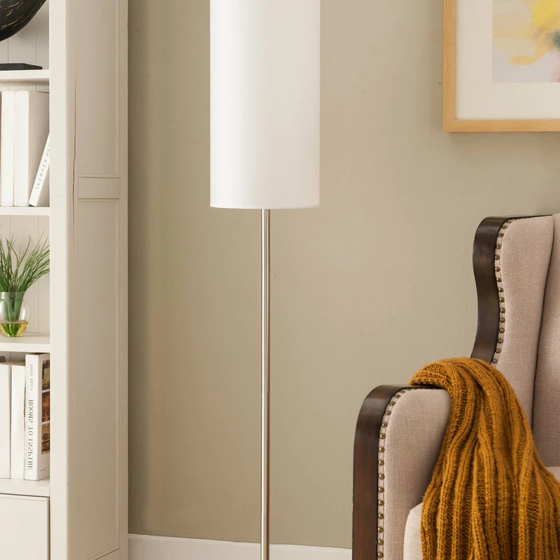 The Amante Floor Lamp features a linear base to bring clean style to your design. With a brushed nickel finish, this piece sparkles by the sofa and brightens a room. This mod lamp puts your room in the style spotlight.