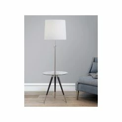 Hot Sale 👍 HOMEGLAM The PREMIERE Modern Tripod Glass Table Floor Lamp, Brushed Nickel 👍