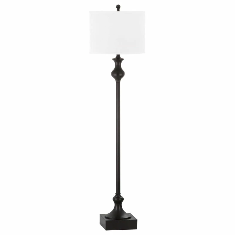 Relax, sit down and sit for a spell. The Brewster floor lamp is ideal beside an armchair in any room in need of a warm glow and architectural detail. Its oil-rubbed bronze metal base boasts a weighty sculpted disposition balanced by a white drum shade.