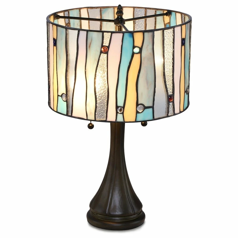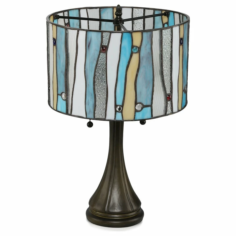 Fancy this modern take on a chic Tiffany-style lamp design. Your decor will love the light blue stained glass interspersed with clear textured glass lampshade. The 22 in. H fits on any accent or end table. This unique barrel-shaped lamp offers a contemporary look and elegance for your home decor.