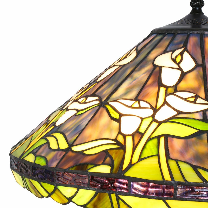 The Calla Lilly Floor Lamp has been handcrafted using methods first developed by Louis Comfort Tiffany in the early 1900s. The shade is made of hand-cut pieces of stained glass, each wrapped in fine copper foil. Unique calla lily inspired lighting will bring the elegance of nature to your home decor with its beautiful vibrant colors.