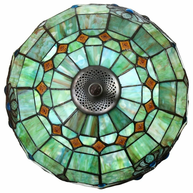 - Shade has beautiful colors of pearlized blue-green with blue cabachons