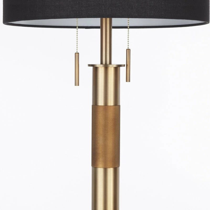 Bring light to your space with the industrial flair of the Trophy Floor Lamp by LumiSource. This lamp gives off great ambient light through a fabric drum shade supported on a sturdy metal construction. With elegant pull chains and subtle textured metal accents, this lamp is perfect for that final touch of modern industrial charm.