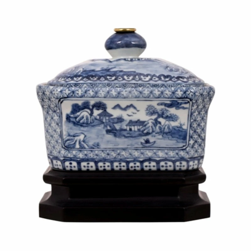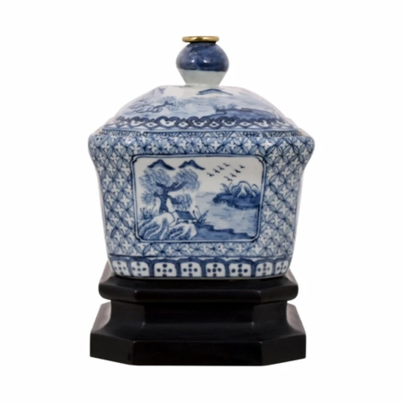 Beautiful Blue and White Porcelain Candy Box Table Lamp Blue Willow 15″